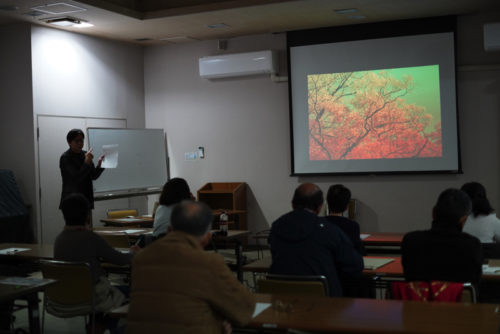 今回は、事前に提出いただいたみなさんの写真データをプロジェクターで映しながら、写真のテーマの考え方、トリミングやレタッチ等後処理等の基本の説明が行われました。