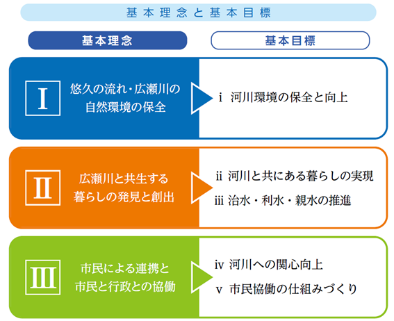 「基本理念」および「基本目標」の詳細な内容は、広瀬川創生プラン2025-2034冊子本編P21~P30→(広瀬川創生プラン(PDF))をご確認ください。